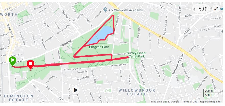 After a quick verbal tour of the park run by one of the kind volunteers, and an internal pep talk, we were off. Burgess Park is…well…lovely. There’s a long straight to start and finish of around 1km that tapers to an underpass, bit of a choke point, midway through. Then you take a sharp left turn and circle round the lake and rejoin the straight. Very picturesque indeed!